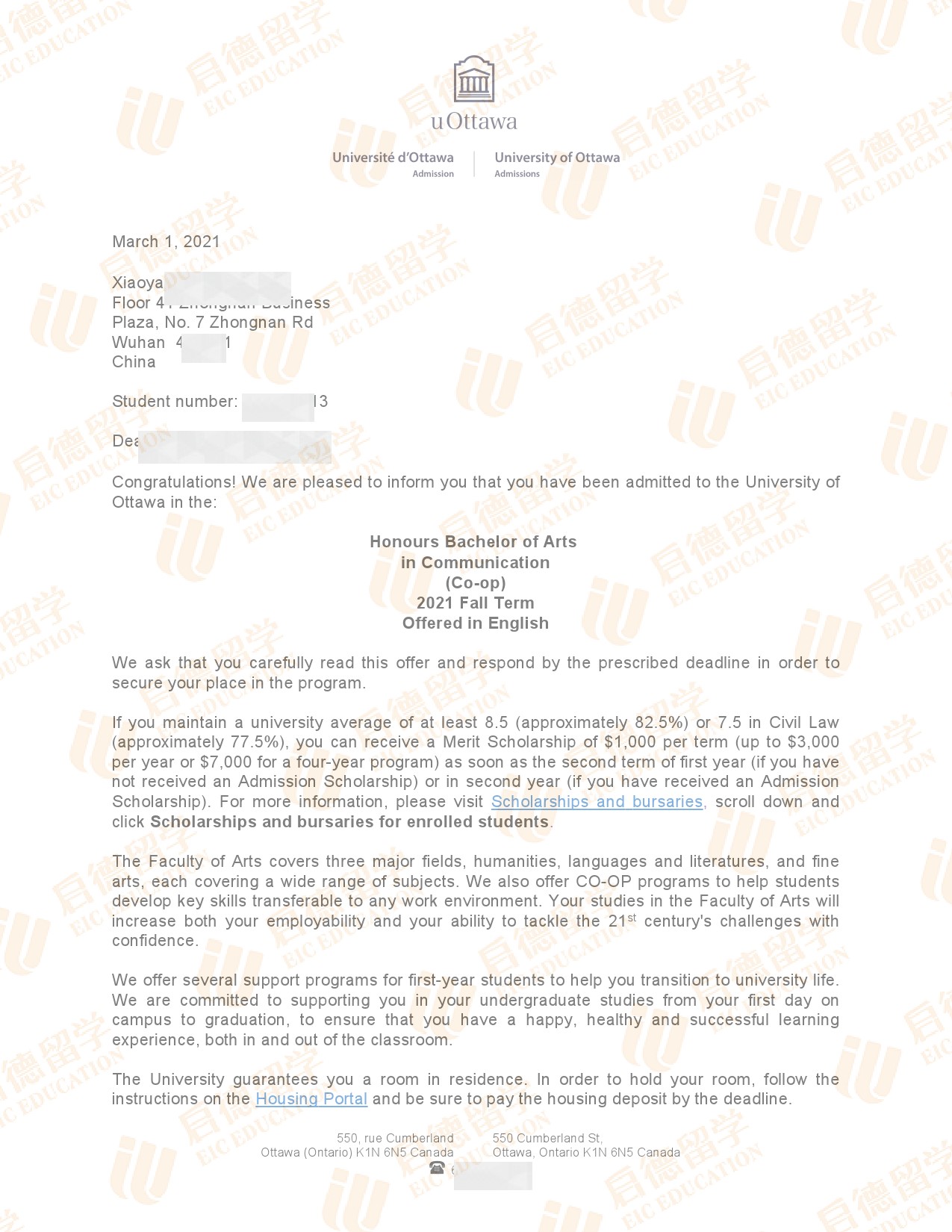 录取院校:渥太华大学