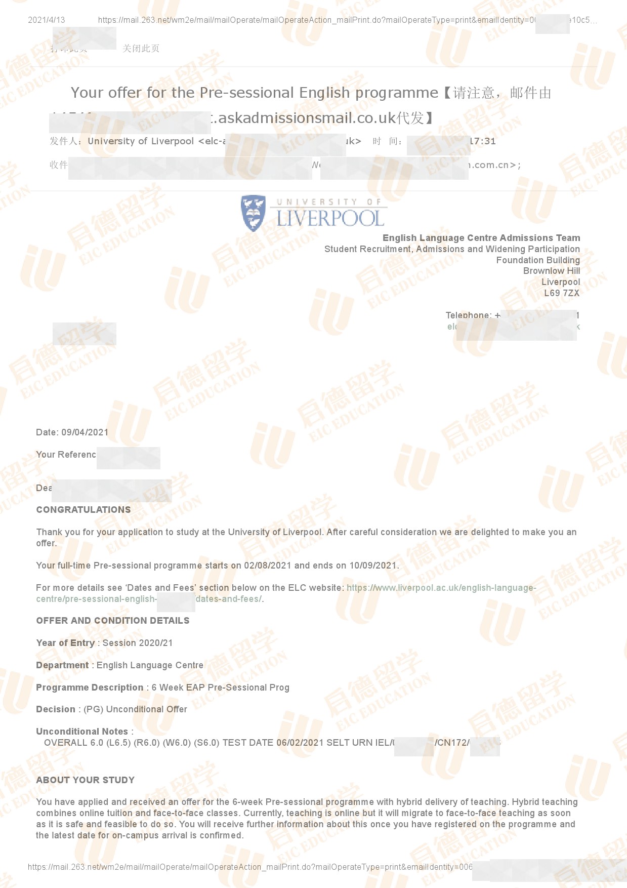 录取院校:利物浦大学