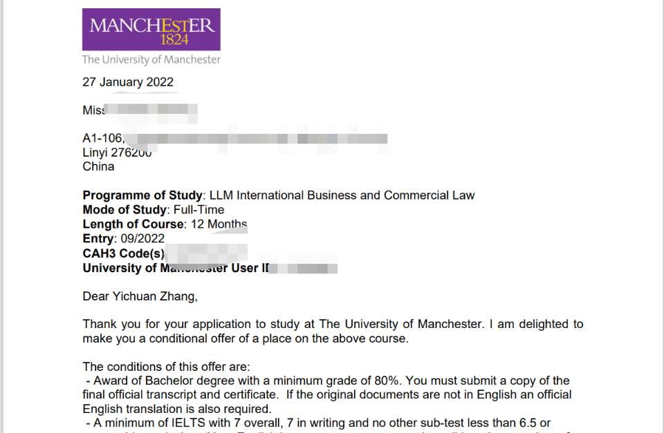 录取院校:曼彻斯特大学