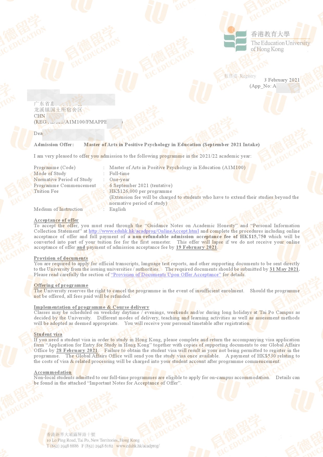 录取国家/地区:中国香港