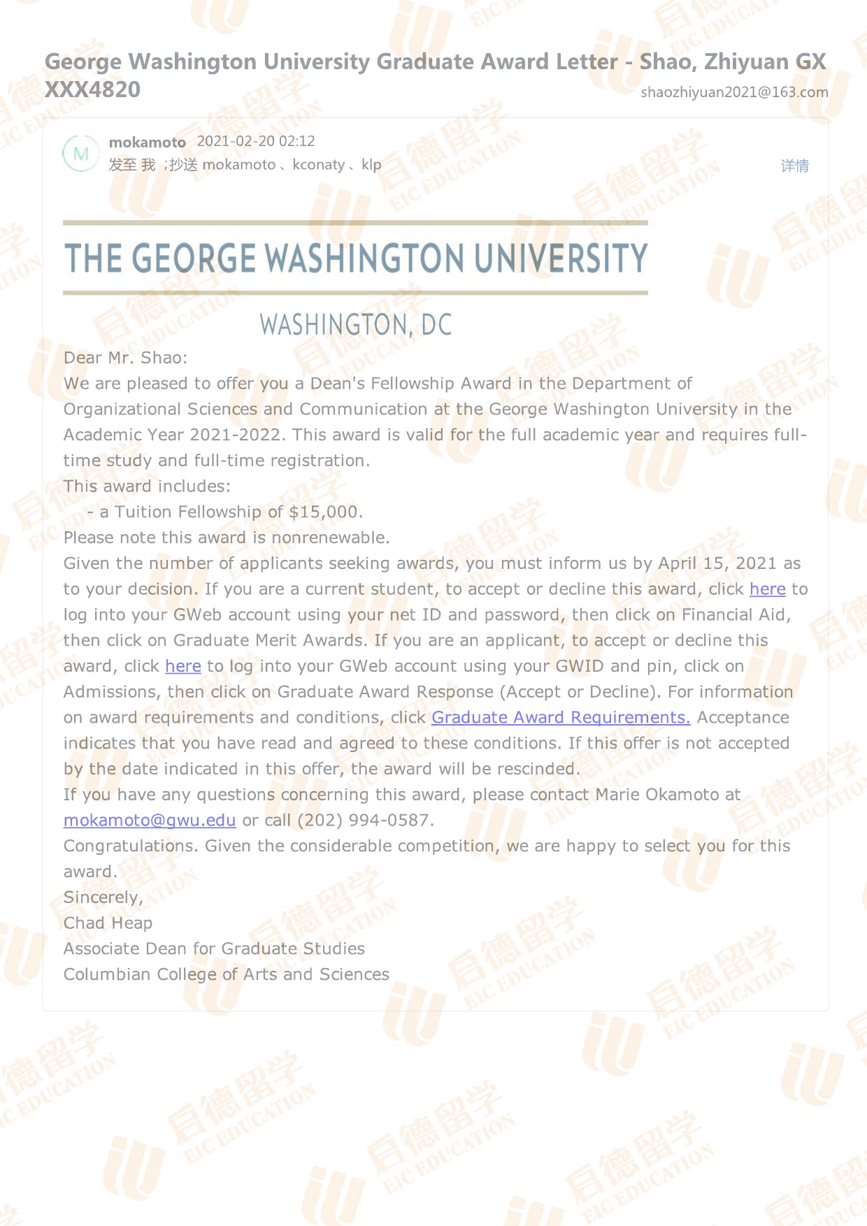 录取院校:乔治华盛顿大学