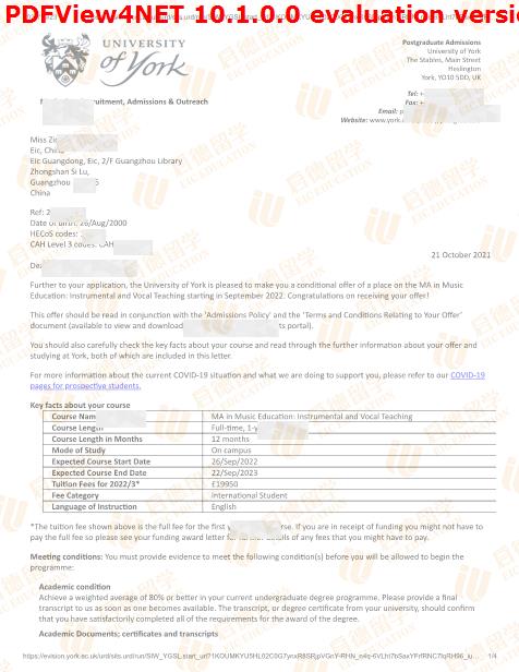 录取院校:约克大学