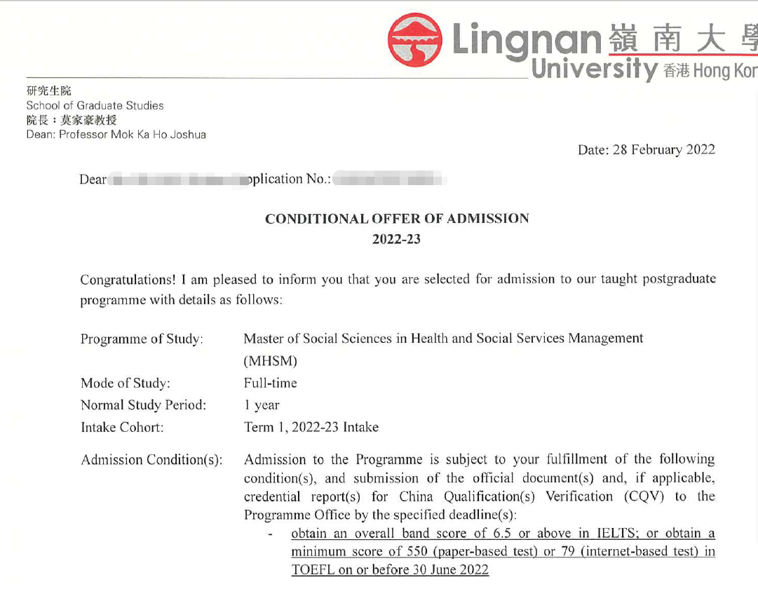 录取院校:香港岭南大学
