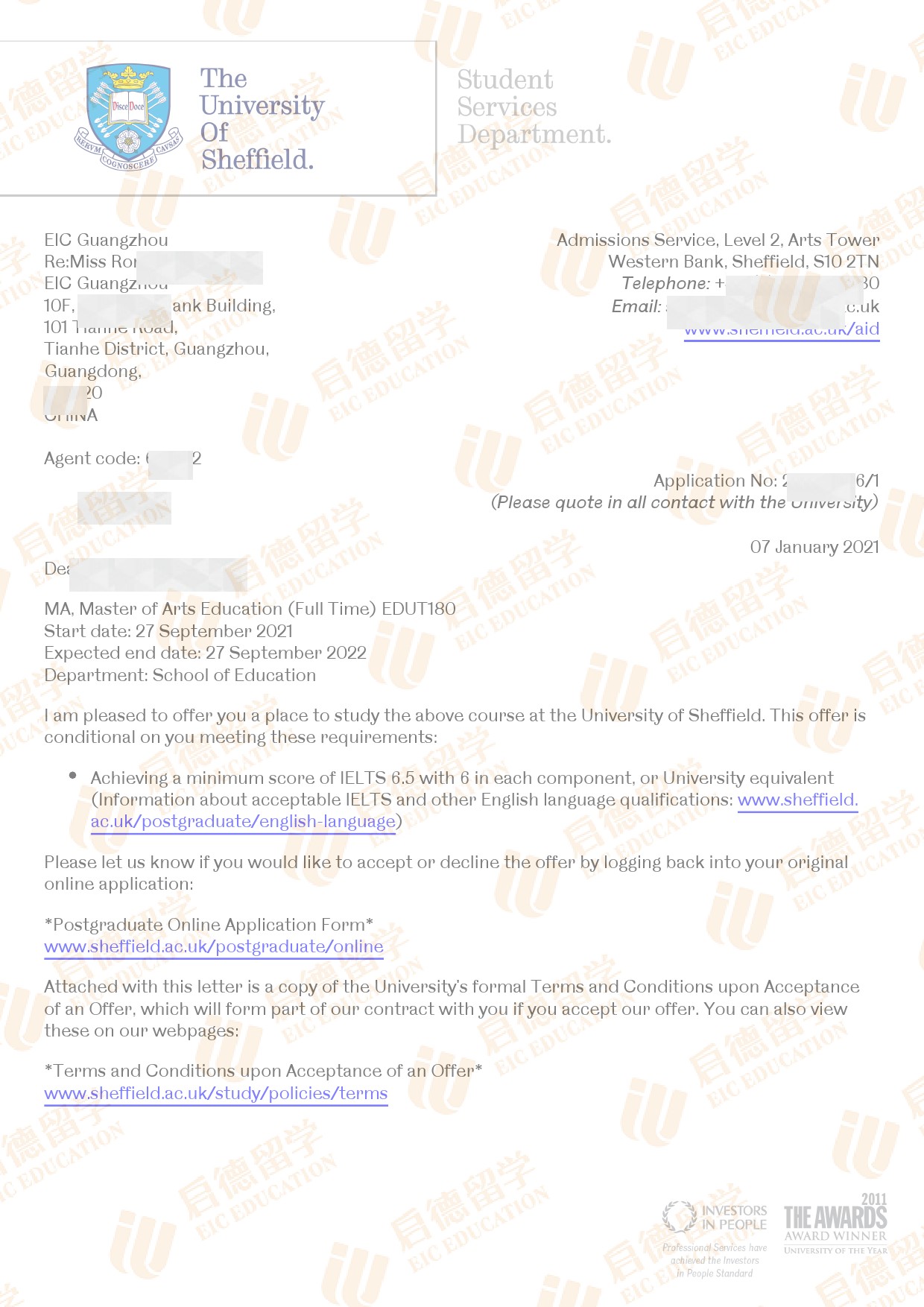 录取院校:谢菲尔德大学