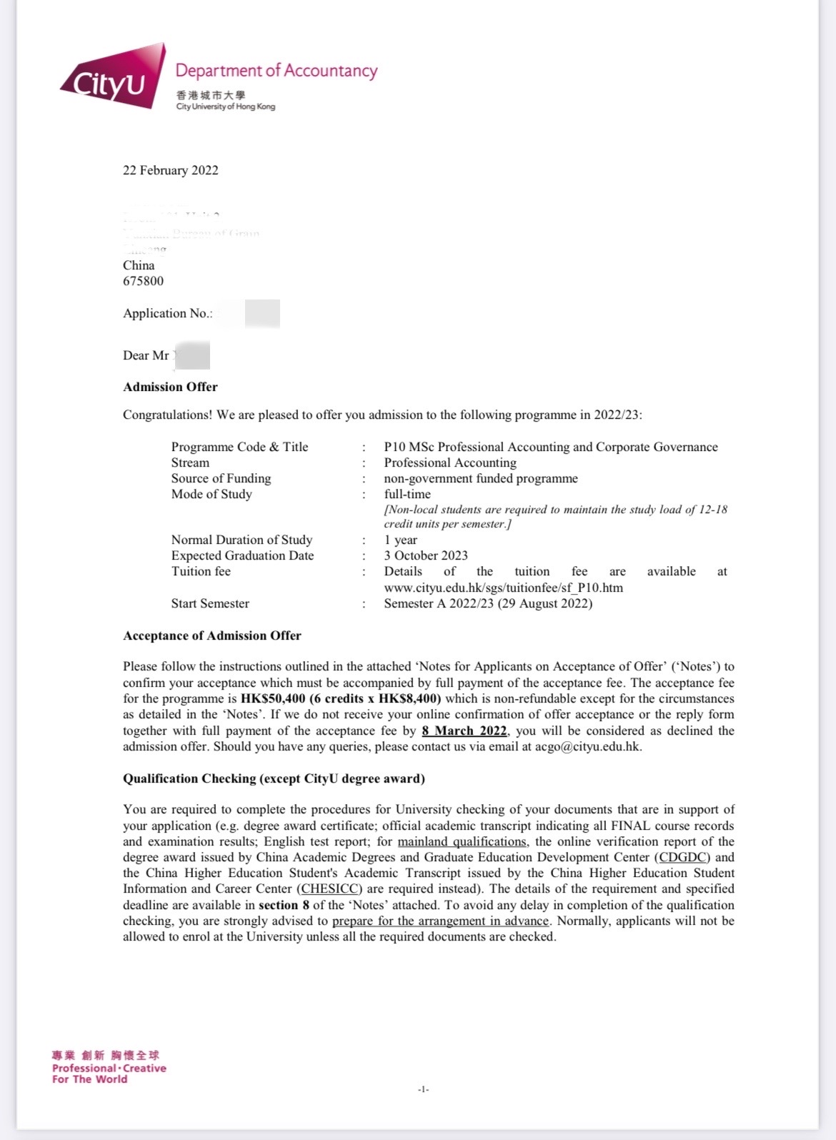 录取院校:香港城市大学