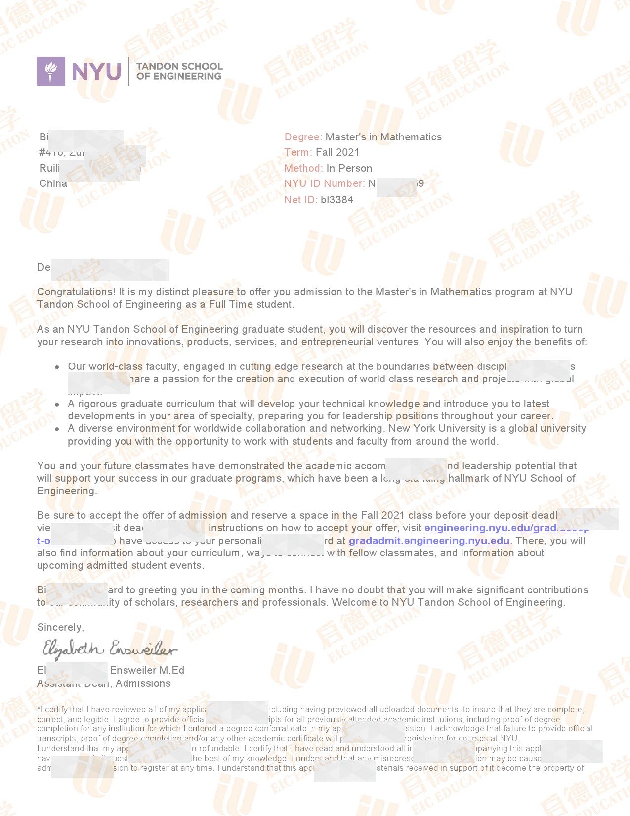 录取院校:纽约大学