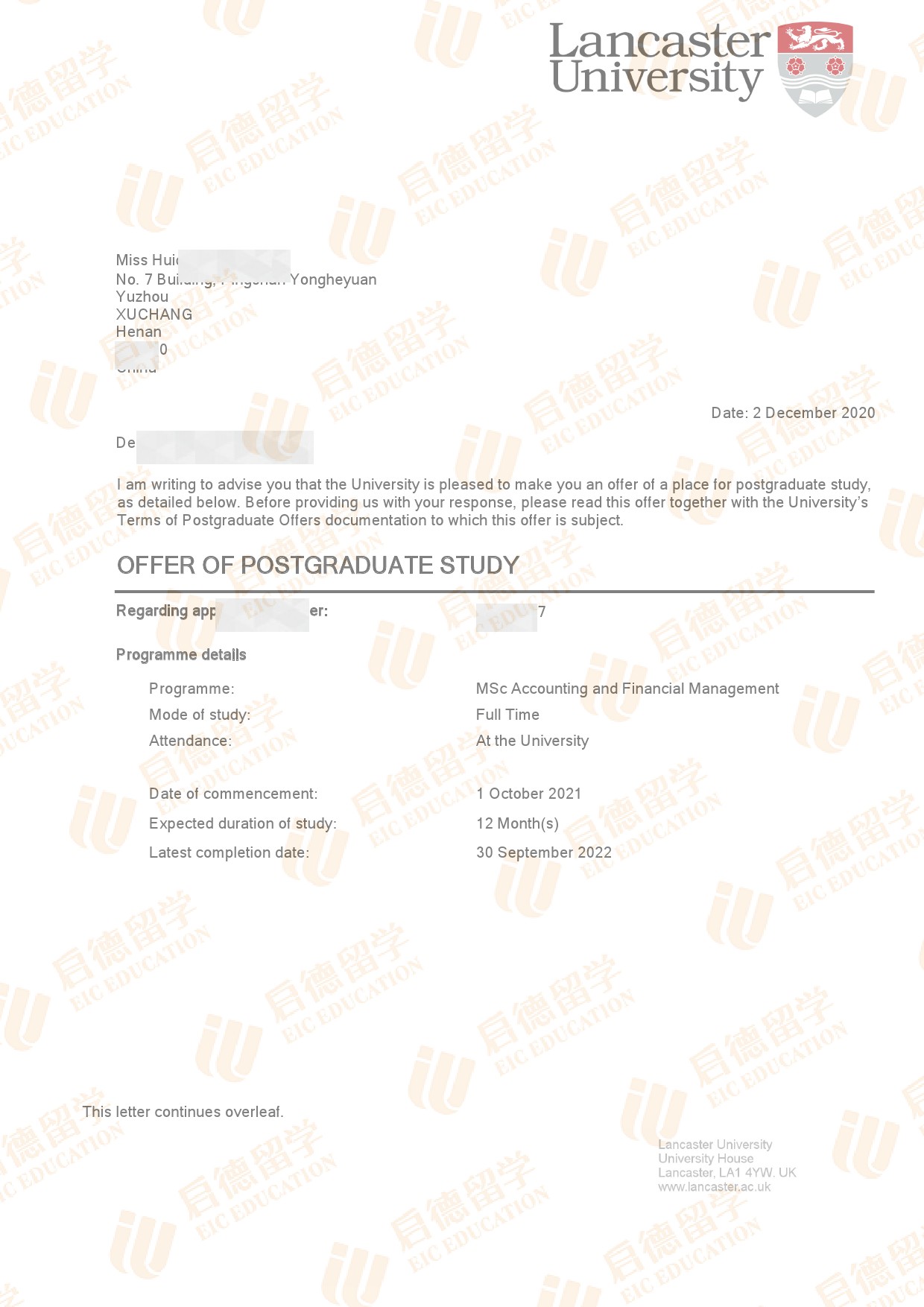 录取院校:兰卡斯特大学