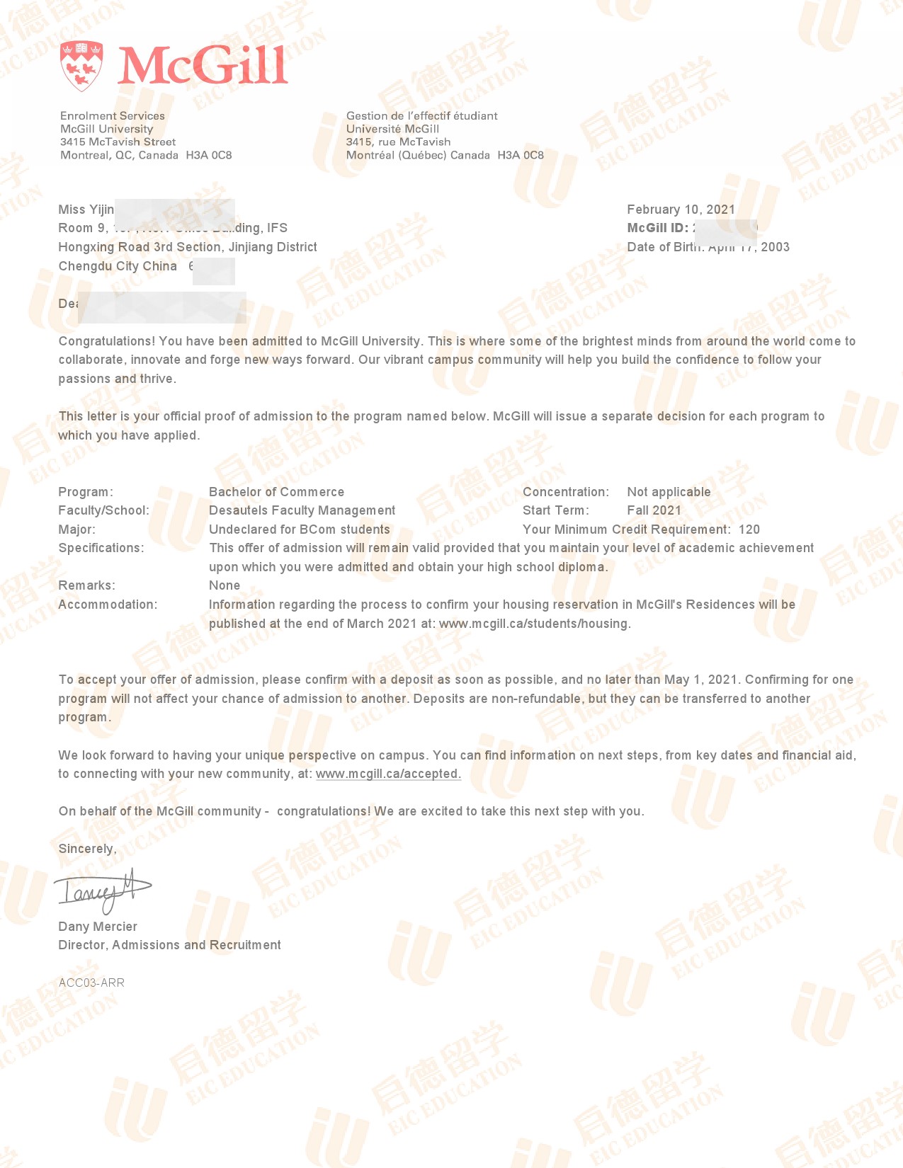 录取院校:麦吉尔大学