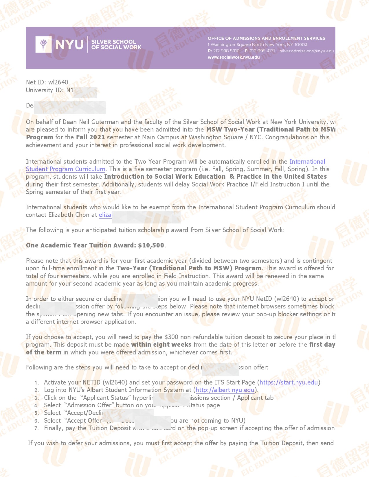 录取院校:纽约大学