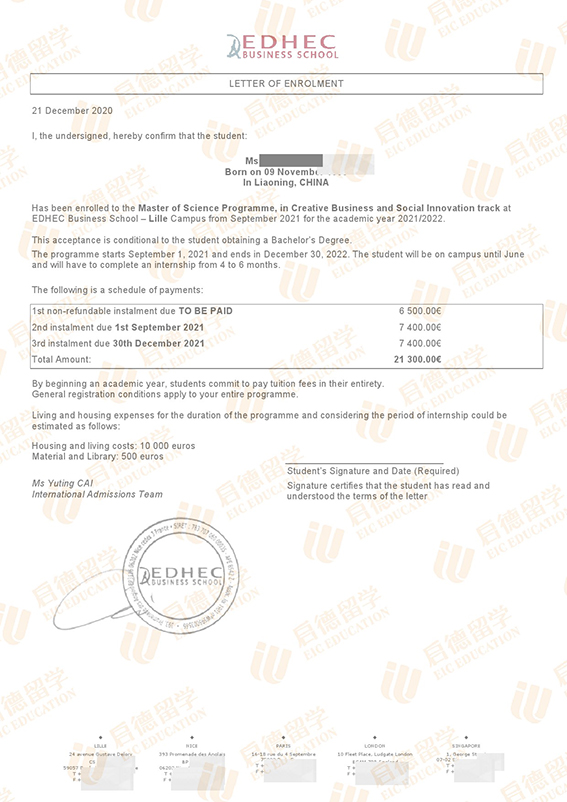 录取专业:MSc in Creative Business and Social innovation商务创意与社会创新专业