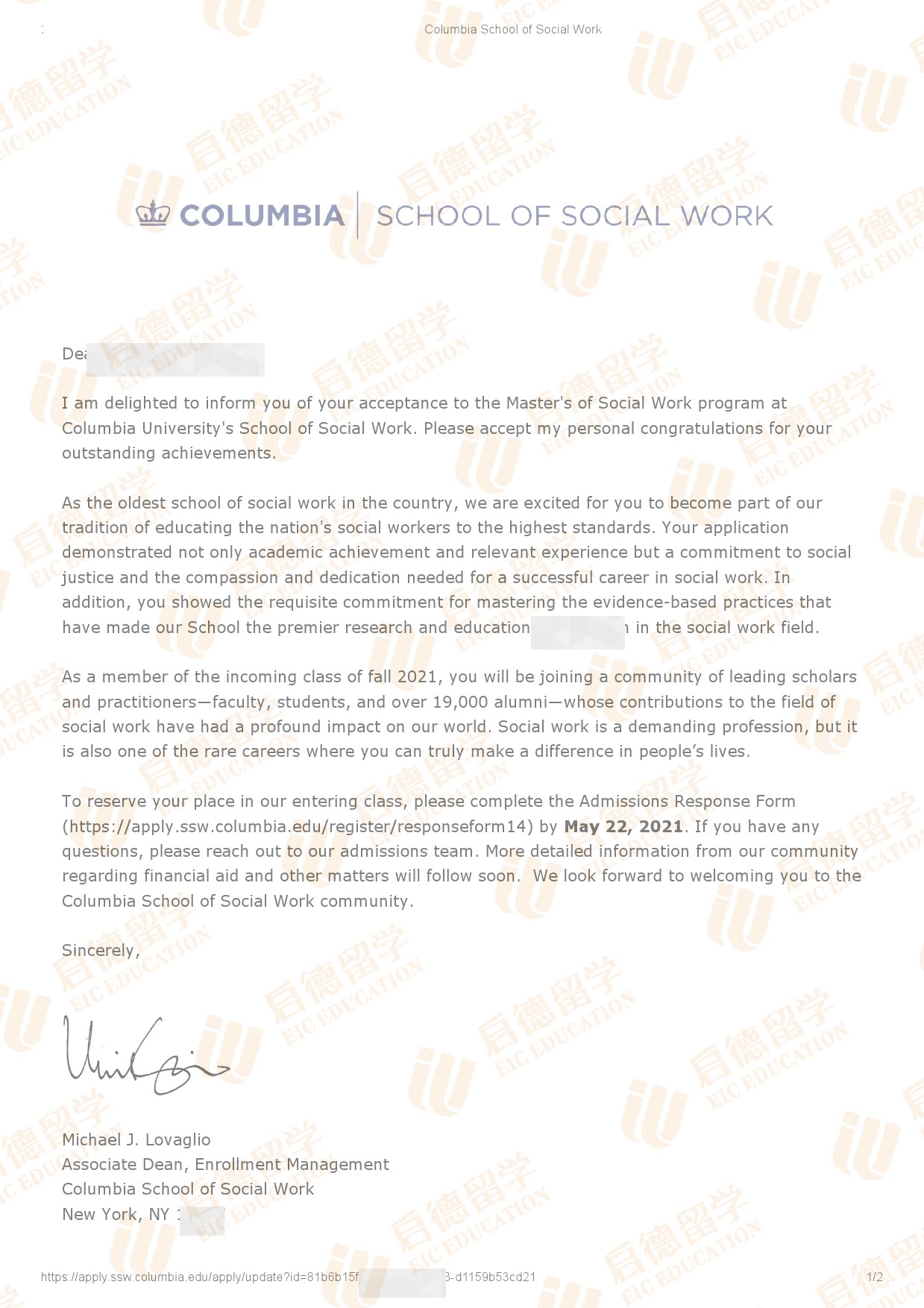 录取院校:哥伦比亚大学