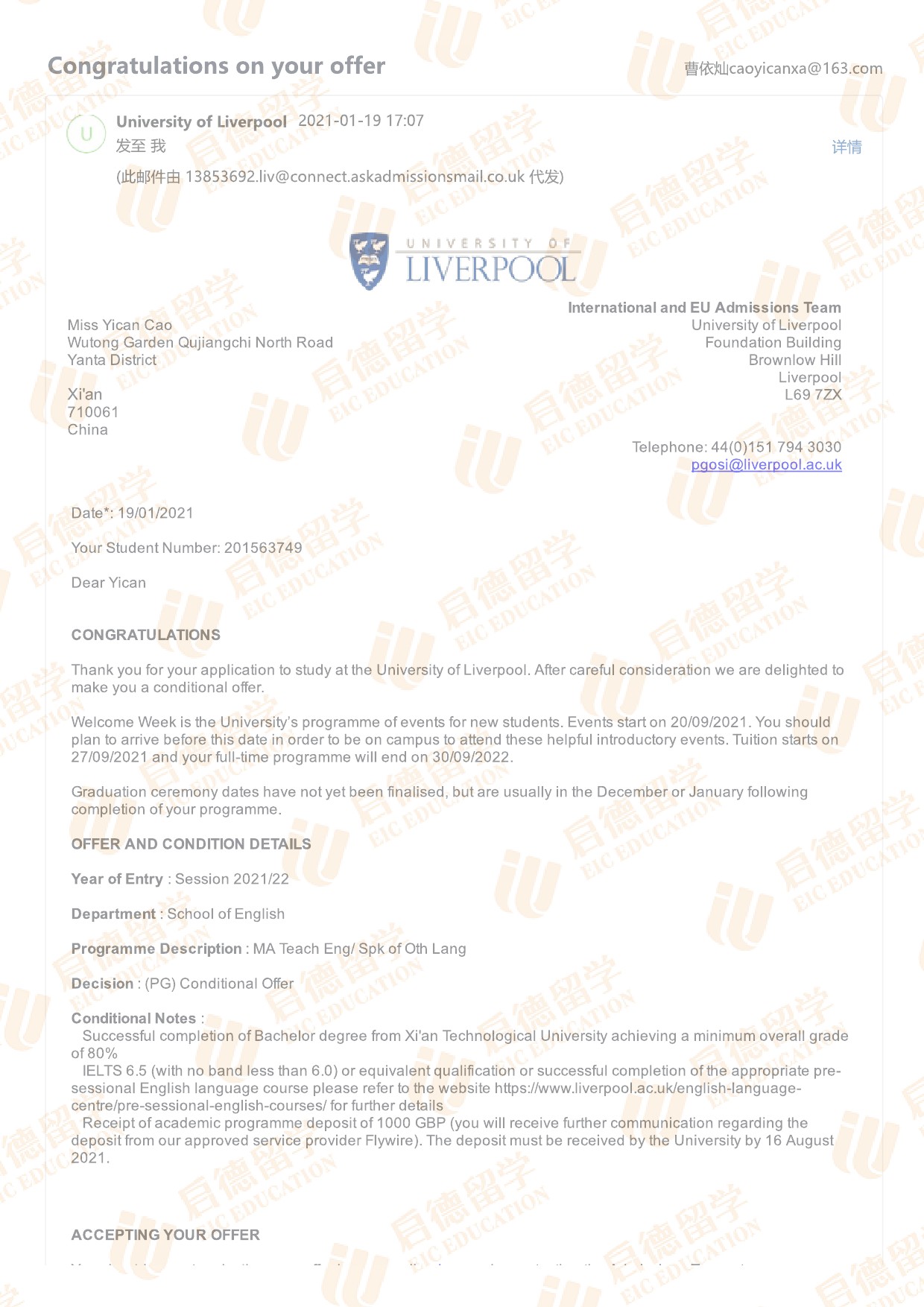 录取专业:MA Teaching English to Speaker of Other Languages(TESOL)