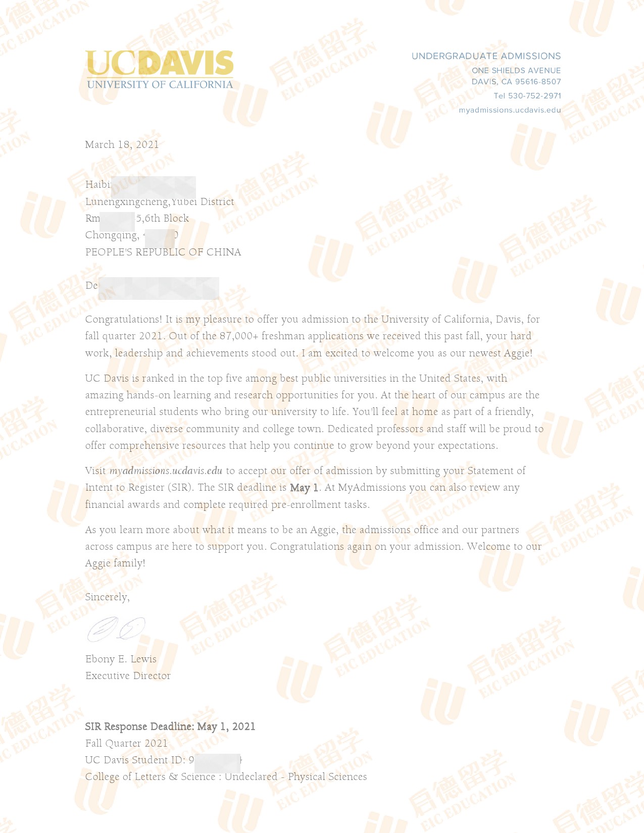 录取院校:加州大学戴维斯分校