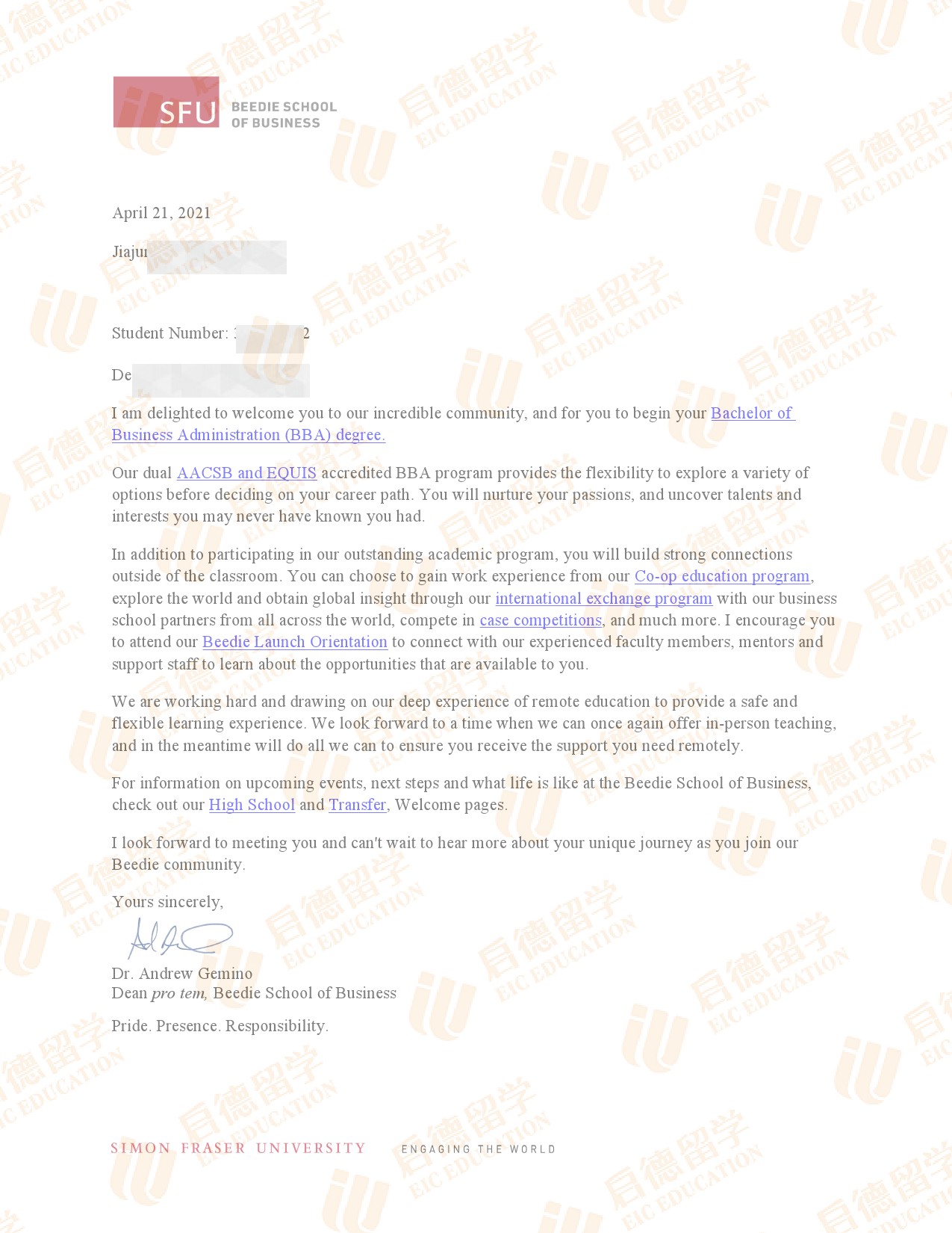 录取专业:Bachelor of Business Administration