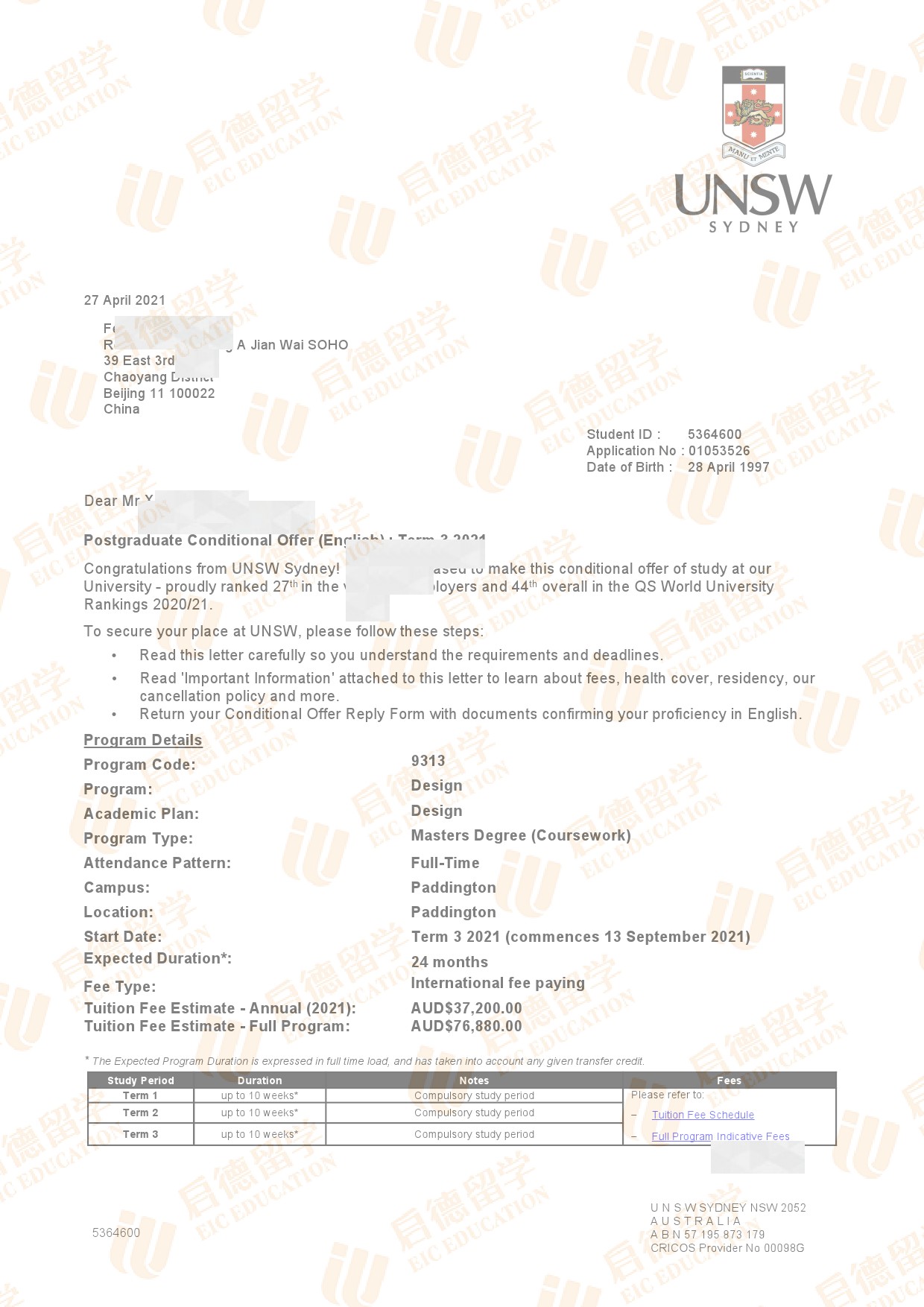 录取院校:新南威尔士大学