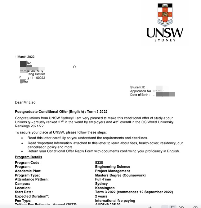 录取专业:Master of Engineering Science (Mechanical Engineering)