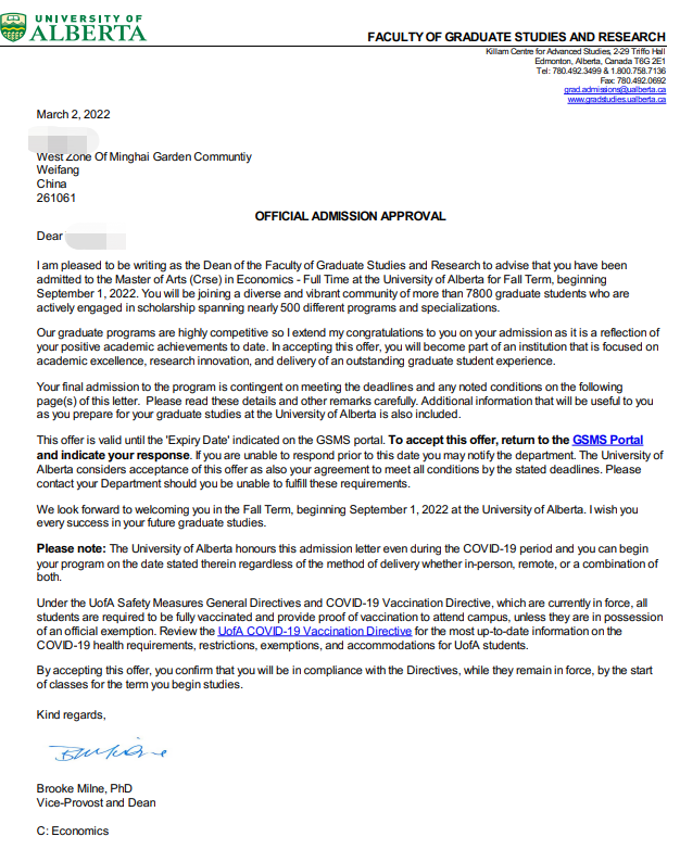 录取院校:阿尔伯塔大学