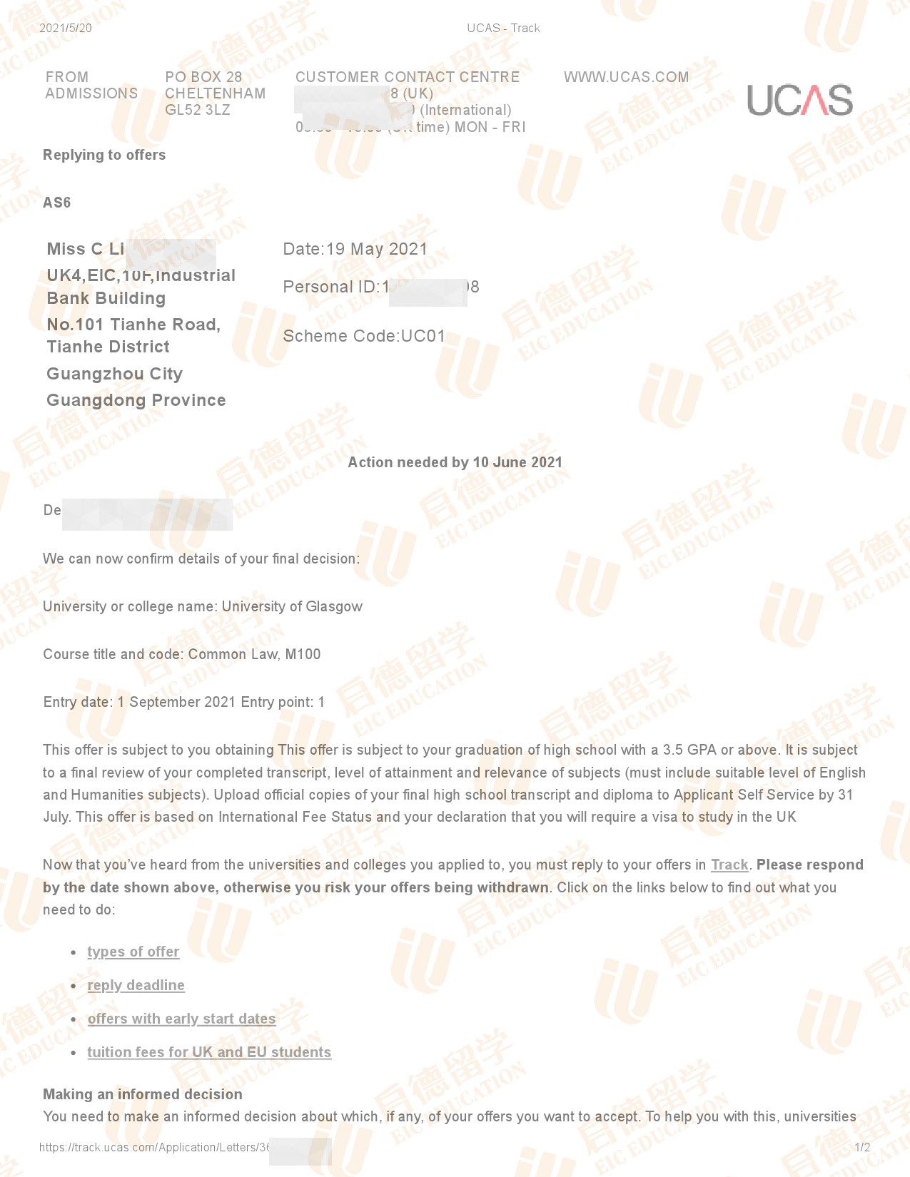 录取院校:格拉斯哥大学