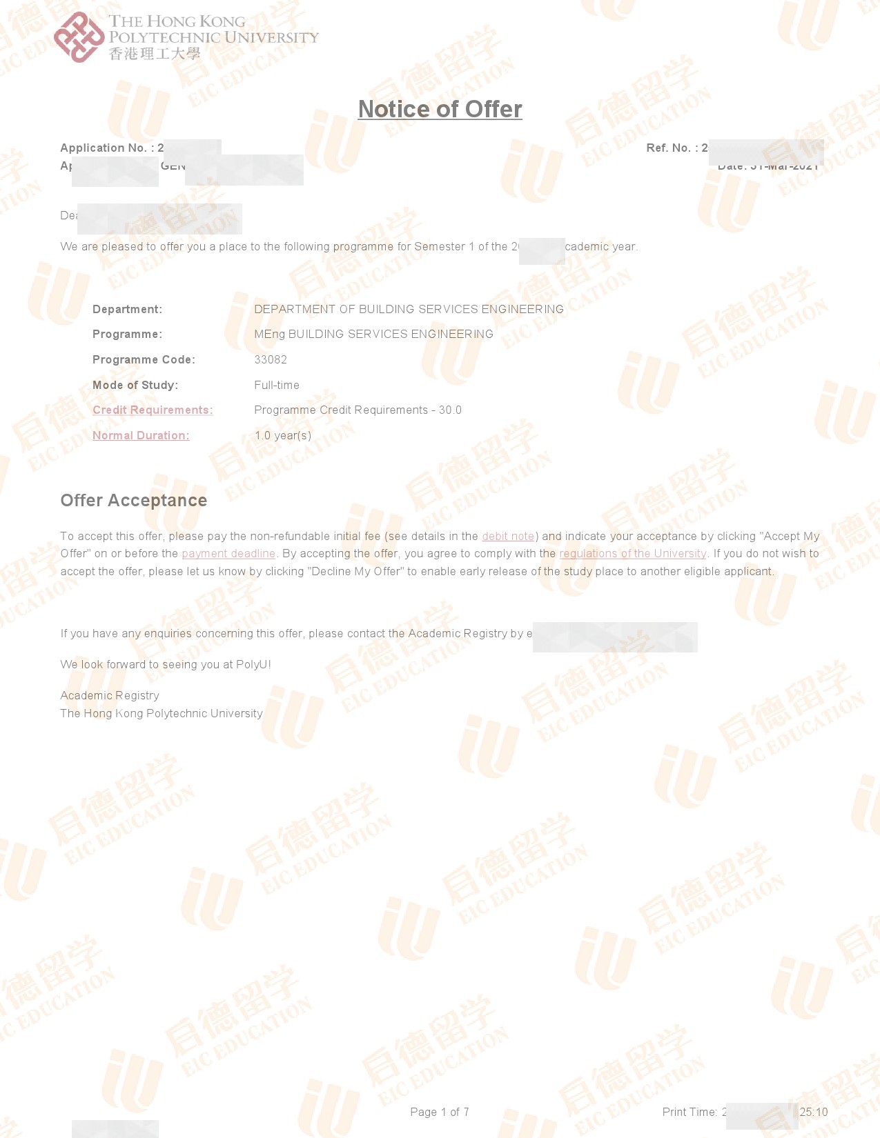 录取院校:香港理工大学