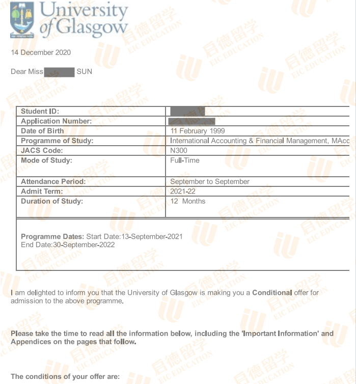 录取院校:格拉斯哥大学