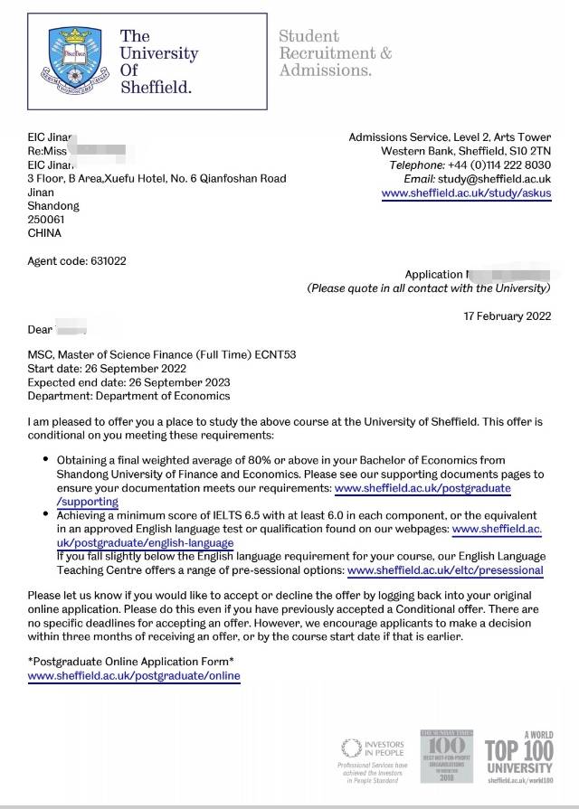 录取院校:谢菲尔德大学
