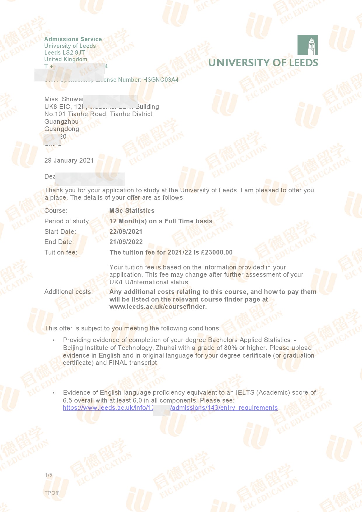 录取院校:利兹大学
