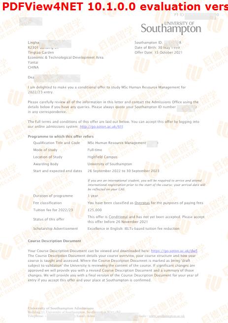 录取院校:南安普顿大学