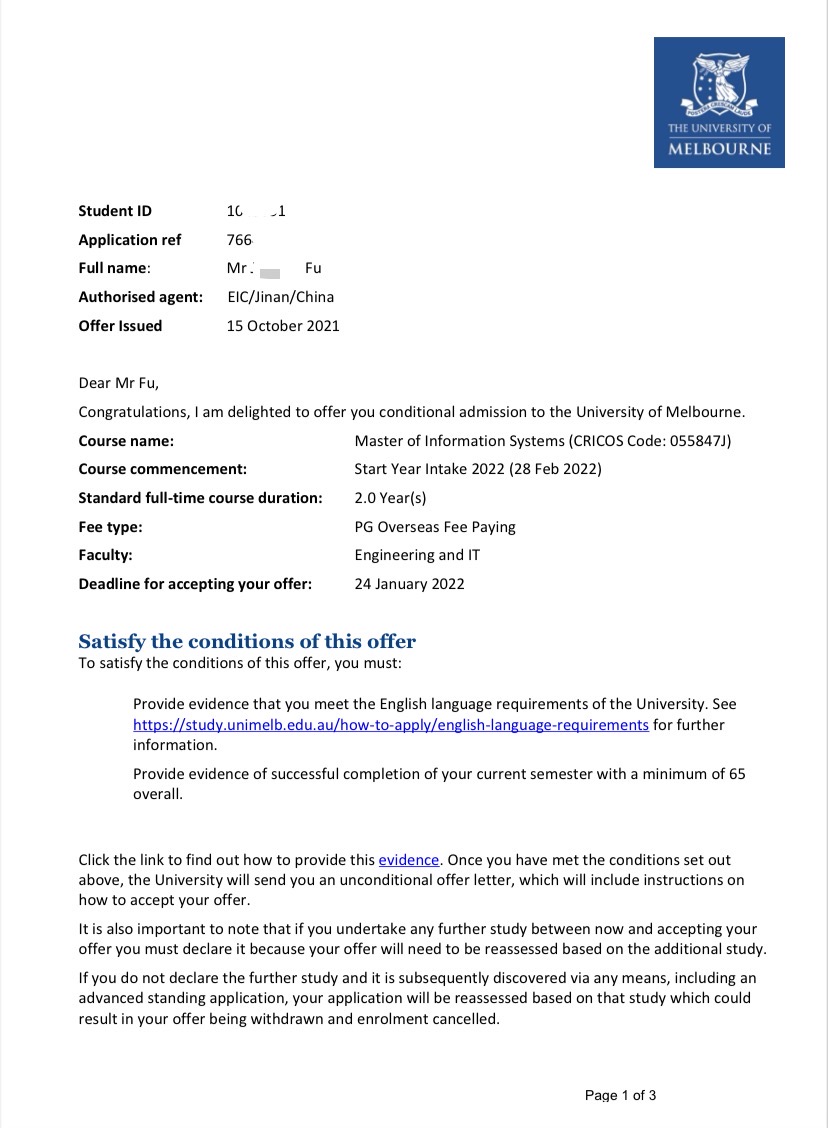 录取院校:墨尔本大学