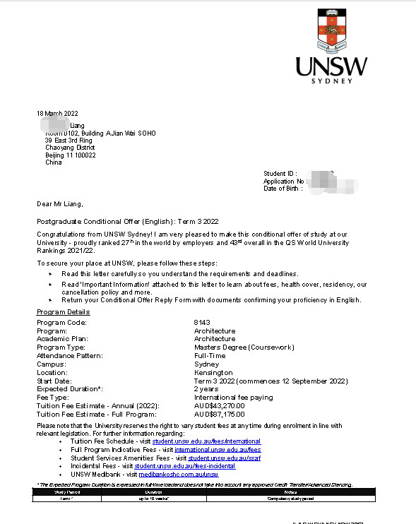 录取院校:新南威尔士大学