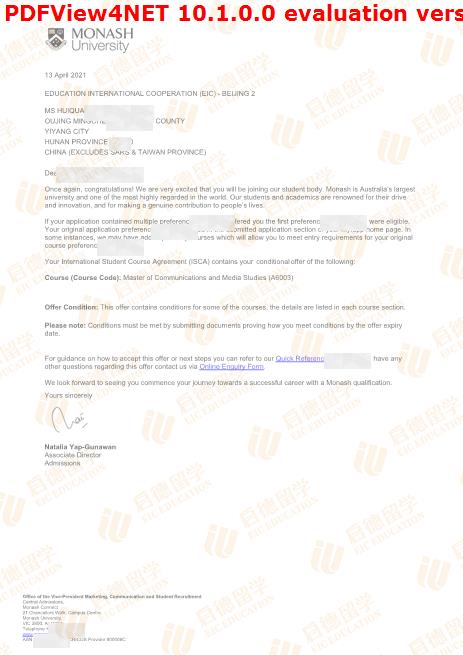 录取院校:蒙纳士大学