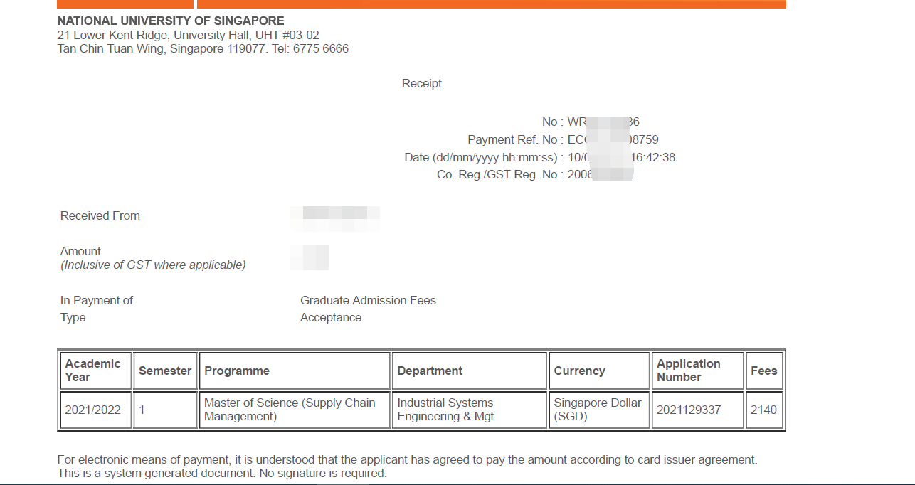 录取院校:新加坡国立大学