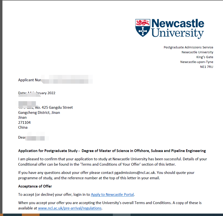 录取院校:纽卡斯尔大学