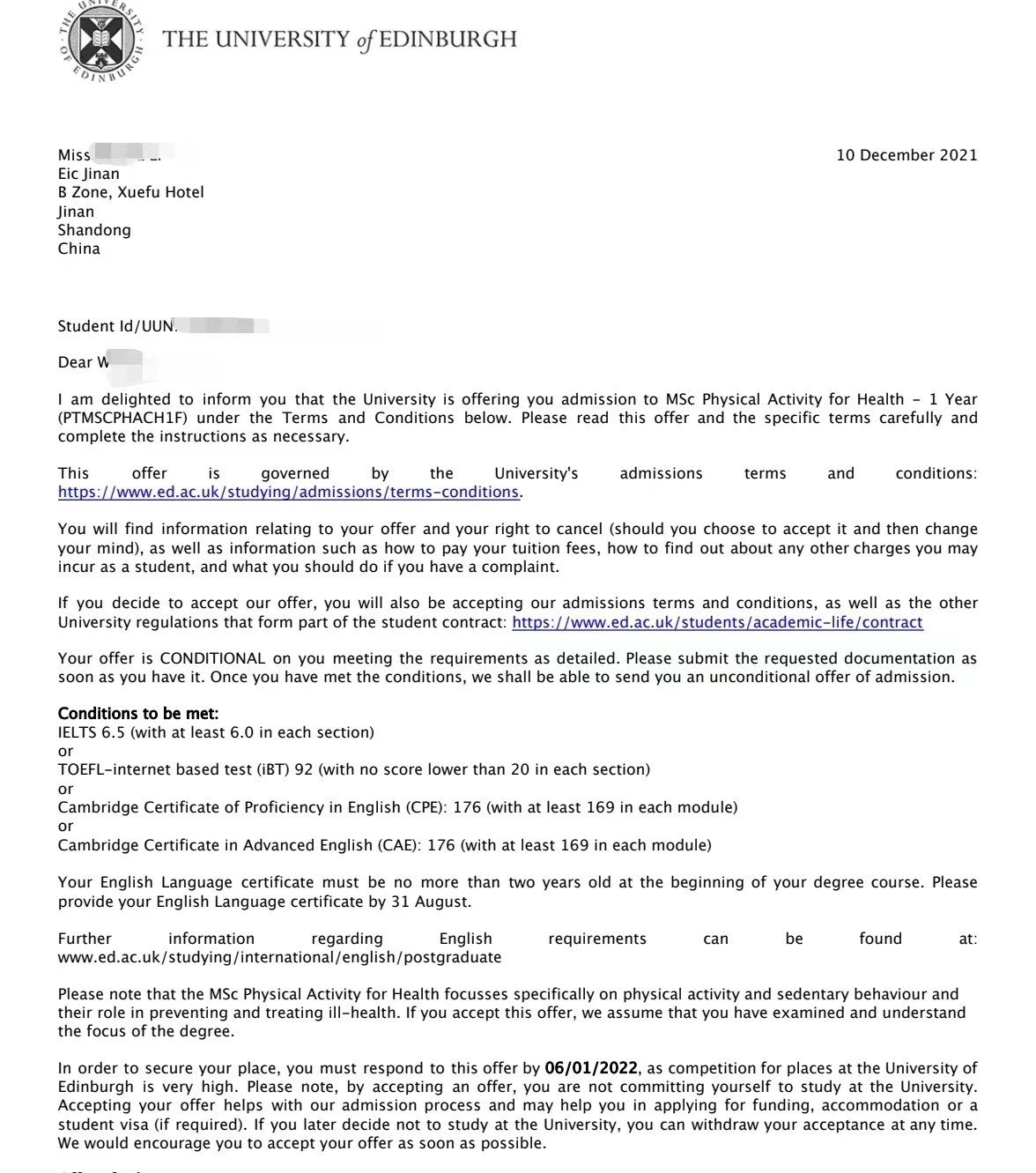 录取院校:爱丁堡大学