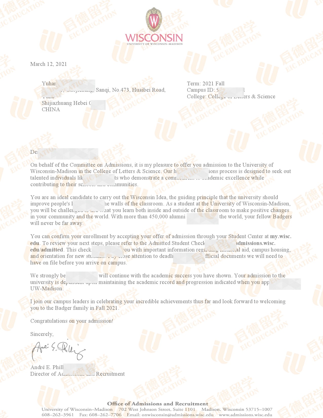 录取院校:威斯康星大学麦迪逊分校