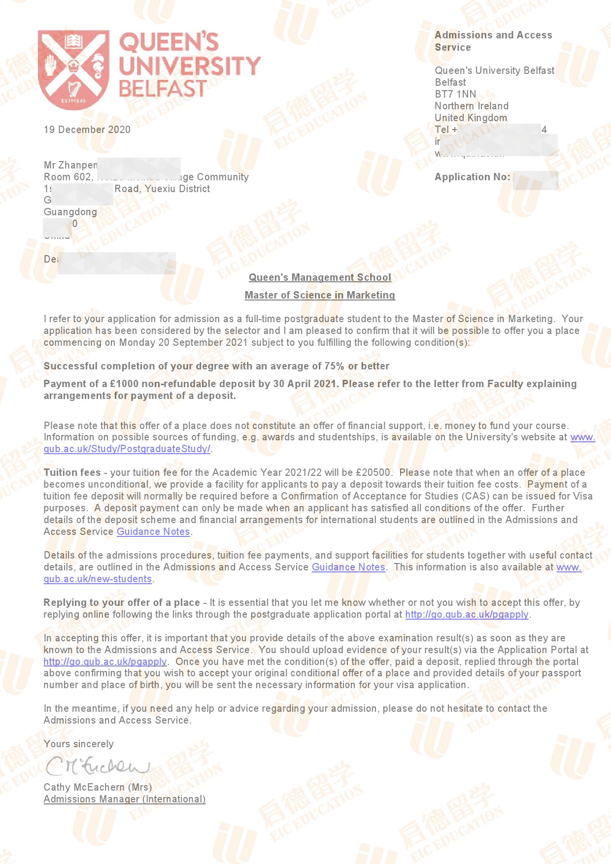 录取院校:英国女王大学