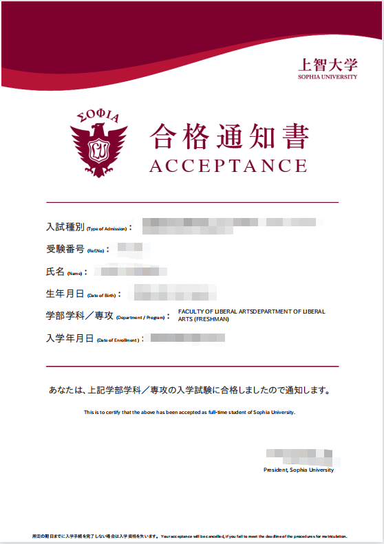 录取院校:上智大学