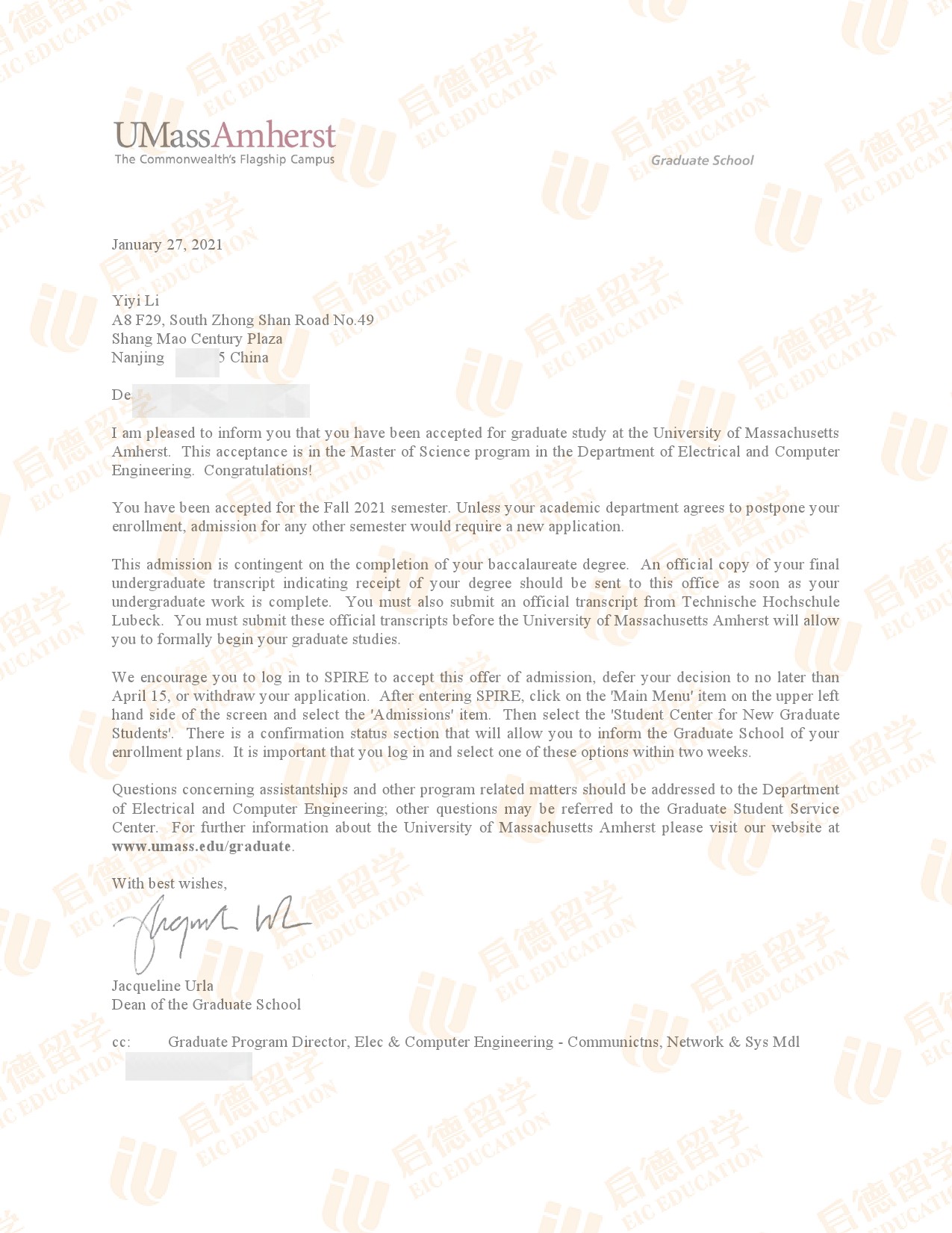 录取院校:麻省大学阿姆赫斯特校区