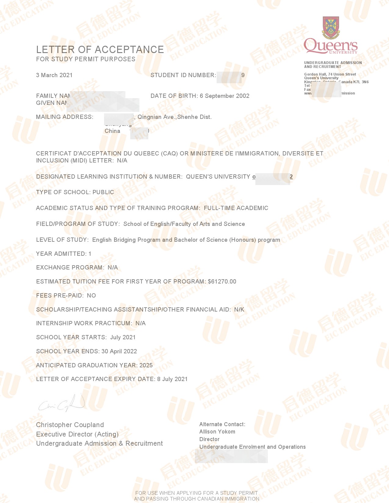 录取国家/地区:加拿大
