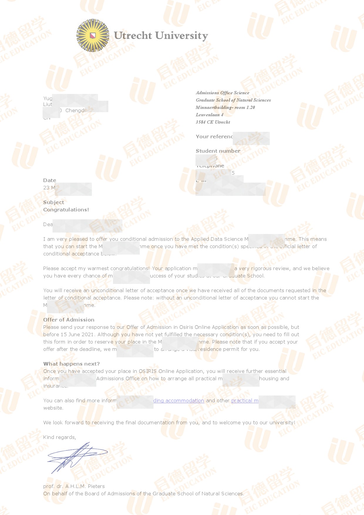 录取院校:乌特勒支大学