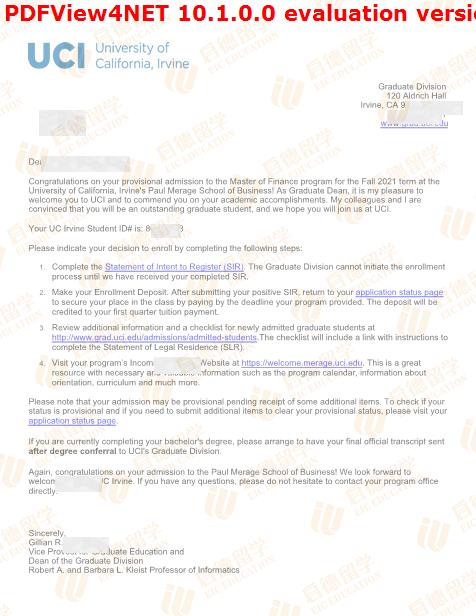 录取院校:加州大学欧文分校