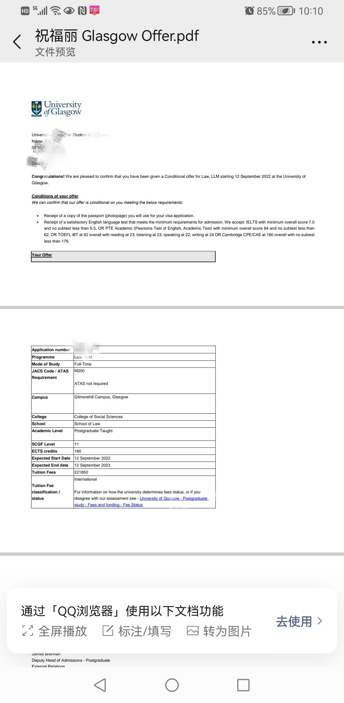 录取院校:格拉斯哥大学