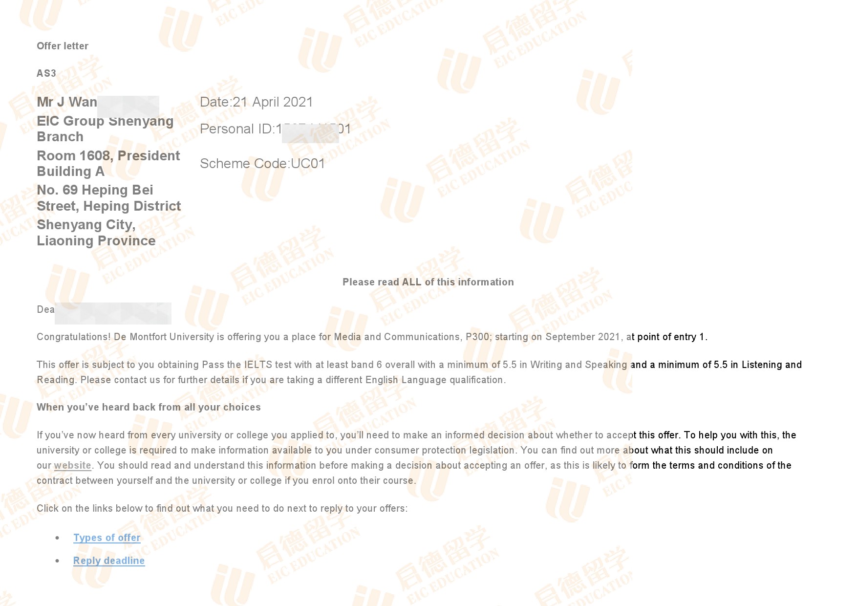 录取专业:BA (Hons) Media and Communication