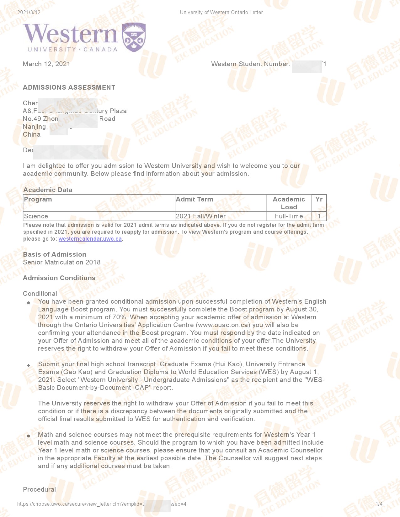 录取院校:西安大略大学