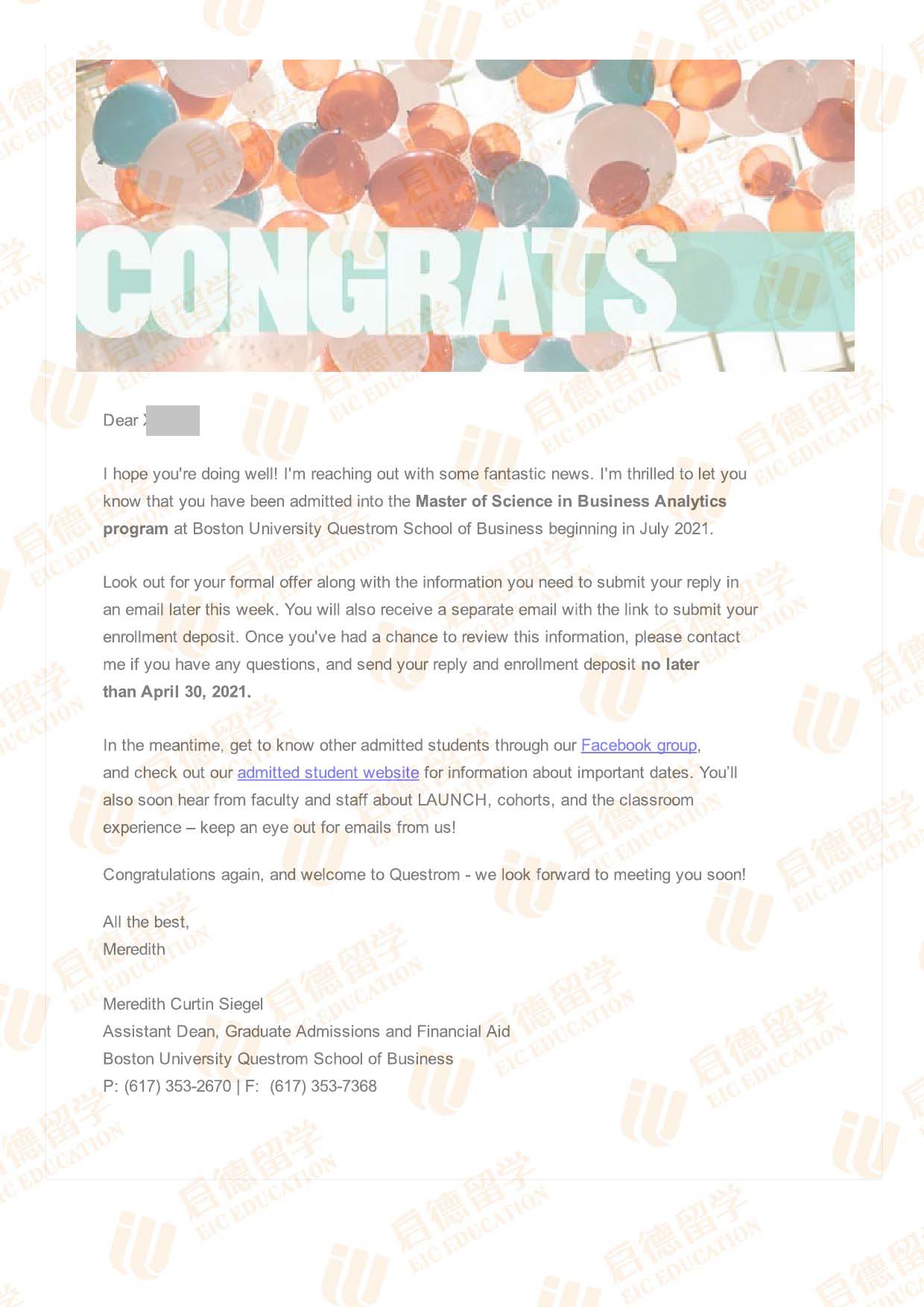录取院校:波士顿大学