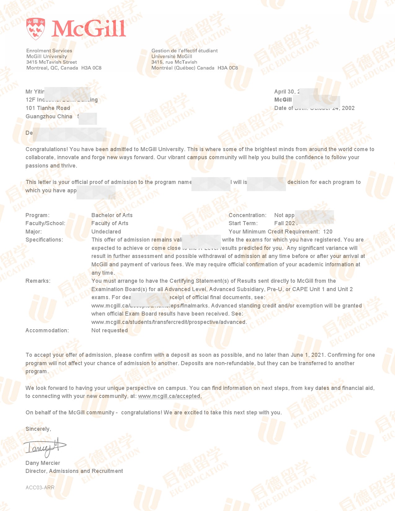 录取院校:麦吉尔大学