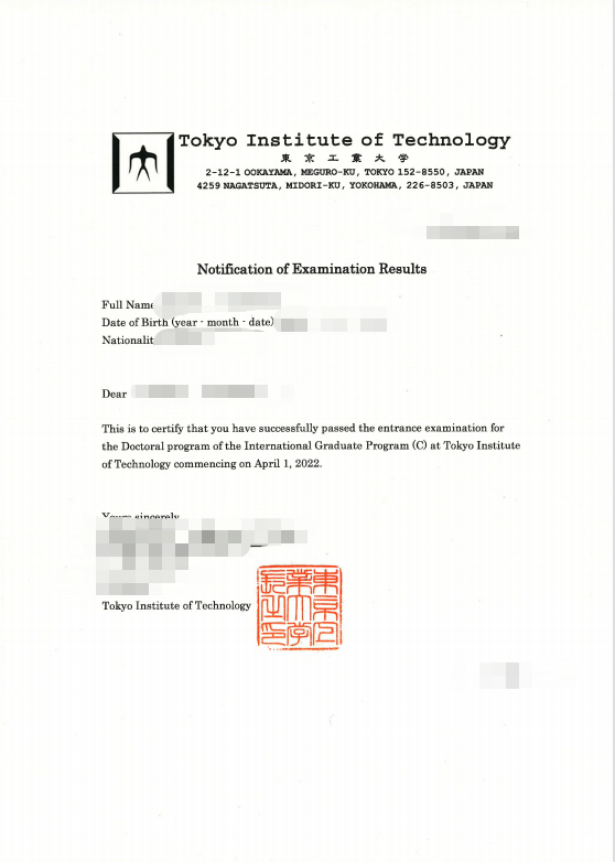 录取院校:东京工业大学