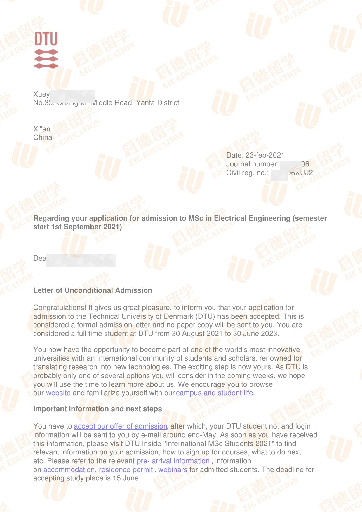 录取院校:丹麦科技大学