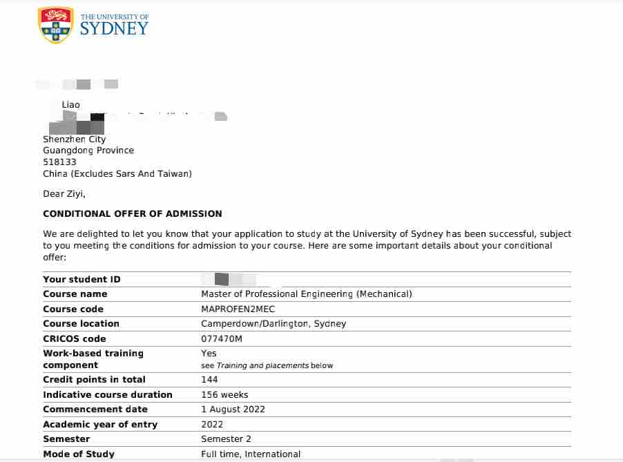 录取院校:悉尼大学