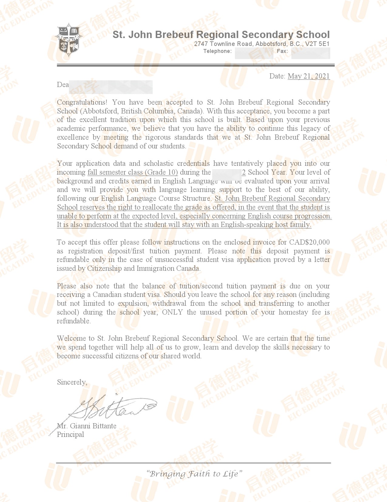 录取院校:圣约翰布雷博夫高中