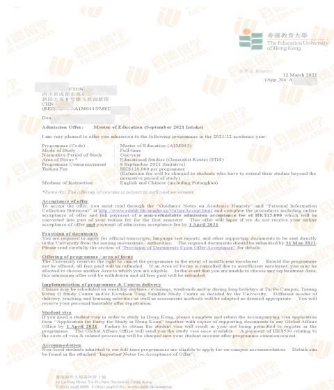 录取院校:香港教育大学